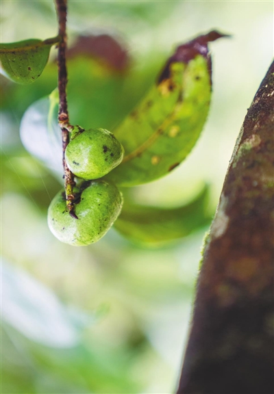 一垄垄低矮、采摘得整齐的茶树中,有几株却长得异常高挑茂盛,看起来平时并没有太多的修剪和集采。“这几株是野生古茶树,树龄都在120年左右,我们平时都舍不得采摘茶叶了,开花结果就把果实留着育种。”海南鹦哥岭景红茶叶有限责任公司负责人周玉景说。