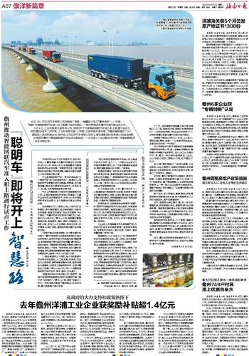 “洋浦产能正在逐步释放,运力需求增长空间很大。”儋州市科技和工业信息发展局办公室主任李奇表示,经相关专家对申报城市港口辐射情况、政府承接能力等方面的评估考量,儋州成功入选试点城市。“智能网联货车能很大程度上提升运输效率,降低人力成本。”李奇举例,在如今繁忙的洋浦港,货车装卸货都需要排队等候,有时司机甚至需要在车上等待十余个小时,很不方便。