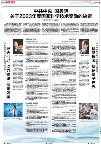 党中央号召,全国科技工作者要向国家最高科学技术奖获奖者及全体获奖人员学习,更加紧密团结在以习近平同志为核心的党中央周围,深刻领悟“两个确立”的决定性意义,增强“四个意识”、坚定“四个自信”、做到“两个维护”,锚定科技强国建设目标,坚持“四个面向”,大力弘扬爱国、创新、求实、奉献、协同、育人的科学家精神,加强基础研究和应用基础研究,打好关键核心技术攻坚战,加快实现高水平科技自立自强,以科技创新支撑高质量发展、保障高水平安全,培育发展新质生产力,为以中国式现代化全面推进强国建设、民族复兴伟业作出新的更大贡献。(新华社北京6月24日电)
