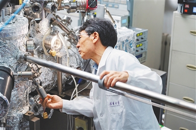 2024年6月13日,薛其坤在清华大学低维量子物理国家重点实验室操作实验仪器。新华社发