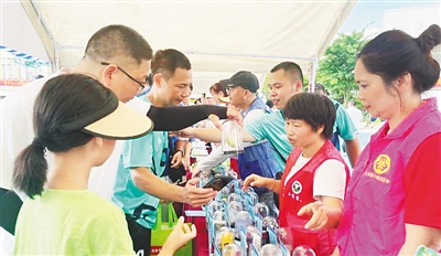 排球赛现场,醒目的禁毒宣传展位吸引众多市民围观。 (图片均由海口市禁毒办提供)
