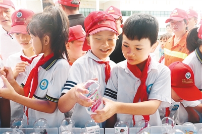 小学生们了解展示的仿真毒品。 (图片均由万宁市禁毒办提供)
