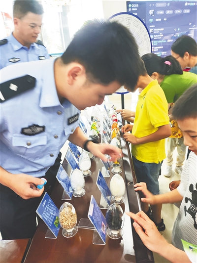 “茶叶、奶茶、巧克力、跳跳糖等,这些都是常见的食品,但它们也有可能是毒品的伪装,所以不要轻易食用陌生人赠予的小零食。”在活动开展过程中,民警结合仿真毒品模型展示,向小朋友们讲解了各种毒品的特征与危害,并针对孩子们的疑惑一一耐心解答。