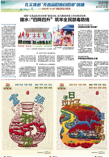 陵水坚持关口前移、预防为先,面向广大群众特别是青少年学生,组织各单位开展以“防毒护苗”“健康人生 绿色无毒”等为主题的宣传活动;深入实施青少年毒品预防教育工程,推动各学校扎实开展“五个一”禁毒专题教育活动,全面应用“青少年毒品预防教育数字化平台”,全县学校平台注册率和学生参与率均为100%,实现对全县103所学校学生毒品预防教育宣传全覆盖,全县青少年毒品预防教育普及率100%,营造了校园无毒品、学生不吸毒的良好环境。利用“6·26”国际禁毒日、全民宣传月等重要时间节点,大力开展禁毒宣传活动,全力营造全社会自觉抵制毒品的浓厚氛围。禁毒大会战来,陵水开展各类禁毒宣传活动共3570余场次,受到毒品教育80万余人,取得了良好社会效果,新发现吸毒人员得到有效遏制。