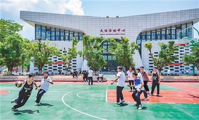 昌江中学学生在打篮球。