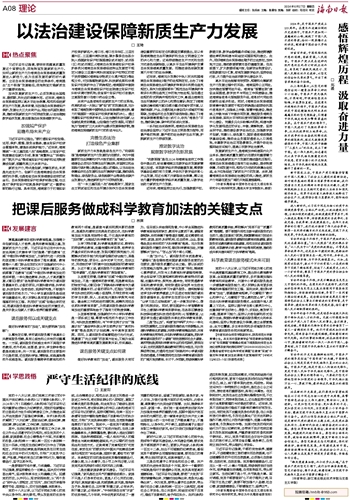发展新质生产力,是海南加快构建现代化产业体系、推动高质量发展的内在要求和重要着力点。法治是新质生产力发展的推进器和压舱石。海南自由贸易港通过强有力法治建设,提供制度保障、引领发展方向、规范行为活动和保障合法权益,全方位地促进了新质生产力的发展。未来,随着海南自由贸易港法治建设的深入推进,新质生产力有望在更加广阔的天地里展翅翱翔。