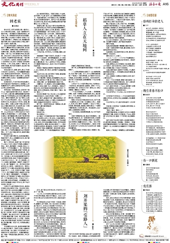 谷小蛙走到田里去。田里已然是一片金黄。金风送爽,什么是“金风”,谷小蛙算是真正见识到了。风是有颜色的,长长地拂过大地,而稻穗低垂,秋天的田野送来香气。香气这个词,原本就来自古老的大地,现在大地正把事物成熟的香气播散在人间,令万物心安。