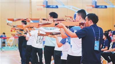 三人一板、人板合一,十分考验团队间的默契。板鞋竞速湖北省代表队队员莫俊杰告诉记者,想要保持整齐度和速度,不能“你慢我快”或“你快我慢”,而是要保持三人奔跑速度的“最大公约数”,才能步伐一致冲向前方。