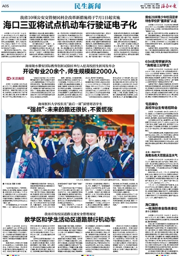 7月3日~5日,受南到东南气流影响,全岛多云天气为主,其中西部和北部地区(海口、儋州、白沙、临高、定安等市县)的部分乡镇午后有雷阵雨,伴有短时强降水等强对流天气;东部和南部地区(琼海、万宁、三亚、陵水和保亭等市县)的部分乡镇夜间到次日上午时段有阵雨;最高气温全岛32℃~35℃,最低气温变化不大。