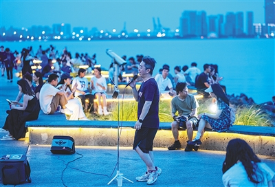 音乐爱好者在海口湾唱歌。本组图片均由海南日报全媒体记者 李天平 摄