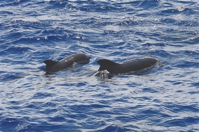考察途中遇到的短肢领航鲸群。