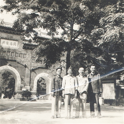 1959年5月,范会国(右二)和王香林(左二)等人在北京香山卧佛寺。