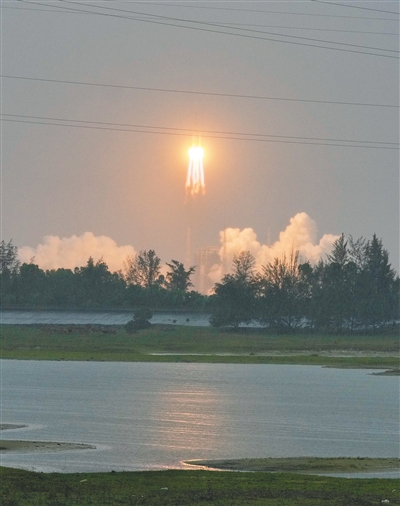 2024年,嫦娥六号探测器由长征五号遥八运载火箭在中国文昌航天发射场成功发射。海南日报全媒体记者 张茂 摄