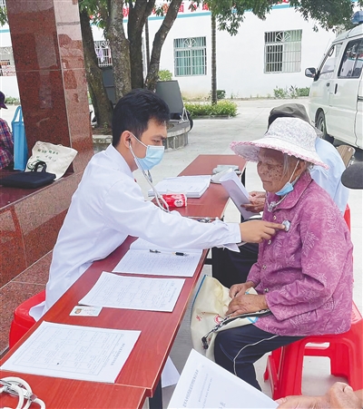 ■ 海南日报全媒体记者 谢凯7月8日一大早,五指山市南圣镇卫生院副院长曾广旺就陆续为来院就诊的老人提供诊疗服务,忙活了一上午才歇息片刻。
