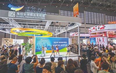 第四届消博会期间,海控免税展馆人气旺。阮琛 摄