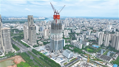 海南中心项目在“逐梦云端党旗扬”党建品牌引领下,紧密围绕建设任务,650多名建设者奋斗在一线,截至6月底,项目核心筒施工已至50层、外框钢结构施工至42层、建设高度达到217.6米,完成年度投资计划的58.14%。