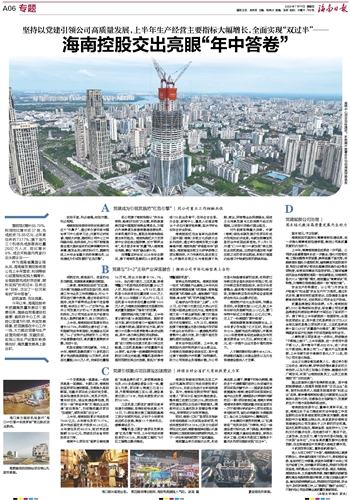 上半年,海南控股实现营收同比增长58.79%,利润同比增长近37倍,均超额完成考核指标,党建融合见实效,“3+2”主导产业持续发力,公司生产经营稳健向好,高质量发展蹄疾步稳,后劲十足。