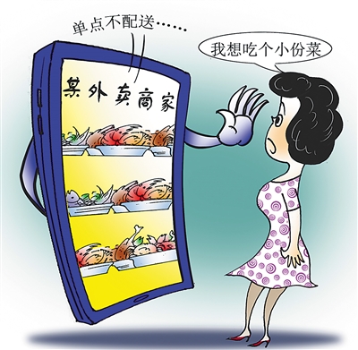 为防止食品浪费,现在很多餐饮外卖平台都推出了“一人餐”“小份餐”入口。但记者采访中也发现,部分外卖商家设置的“起送价”,成为消费者选购小份菜的障碍。有的商家甚至将价格较为便宜的小份菜设为“单点不配送”商品。小份菜为何成老大难?主要原因还是利润太少。小份菜单价低,单独配送或许赚不到什么钱,甚至是赔本赚吆喝,商家因此缺少推广动力。但这并非无解难题,例如有消费者建议小份菜可以正常收取配送费,以此减少成本,也让消费者有选择权。在全社会提倡“光盘”的背景下,推广小份菜已是大势所趋。商家应积极响应号召,从减少浪费的角度积极推广小份菜,优化餐品供给形式,丰富餐品规格,用实际行动减少“舌尖上的浪费”。