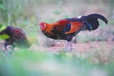 在海南,红原鸡大多栖息于海拔较低的山地丛林、橡胶园的防护林带及经济作物区地缘的灌丛之中。“红原鸡进村觅食时常发生,一部分红原鸡还会和家鸡杂交。”海口畓榃湿地研究所所长卢刚说。