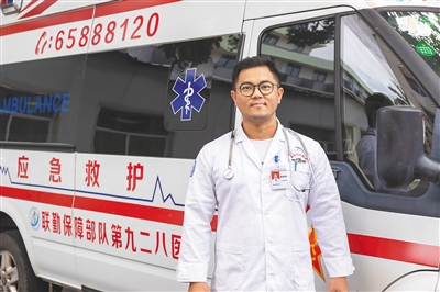 蔡城洲站在救护车前。