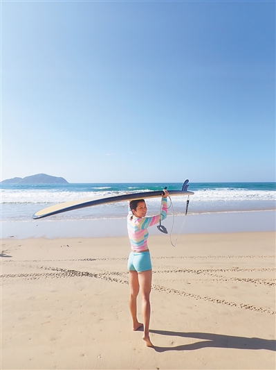 “离开海南后,我发现我非常想念这种面朝大海、每天冲浪的生活。”踏上冲浪板,在海面上或驰骋、或漂浮,小佳觉得这是她与大海、与自我对话的方式,“在一望无际的海面上,我找到了一种自由自在的感觉!”