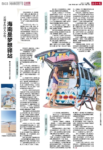 再次动身来海南前,她把车身刷成蓝色,那抹蓝,是海南的天空蓝、海水蓝,蓝得清新,蓝得让人放松。
