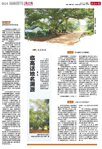 ■ 杨树一个地方的地名,最早往往是由当地人以自己的方言来命名的,因此不同方言的地名,往往有自己的特色。在海南岛西北部地区的临高县、海口西郊、澄迈北部和儋州东北部地区,存在着一种特殊语言——临高话。临高话地名有哪些特色?又有哪些内涵呢?
