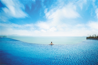 ■ 海南日报全媒体记者 李艳玫“我是奔着网红无边泳池而来的,听说拥有开阔的视野,不仅可以饱览三亚湾的美丽海景,还可以拍出时尚大片。”近日,游客李铭入住三亚康年酒店,该酒店1200平方米无边泳池给他留下了深刻的印象。