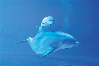近日,一只来自西班牙的宽吻海豚(又称瓶鼻海豚)“娜雅”在位于陵水黎族自治县的海南海洋欢乐世界度假区成功产下一只雌性幼崽。这是海南首只在人工环境中自然受孕生产的宽吻海豚,也是海南在国际保育合作领域的新突破。图为“娜雅”和它诞下的海豚宝宝。
