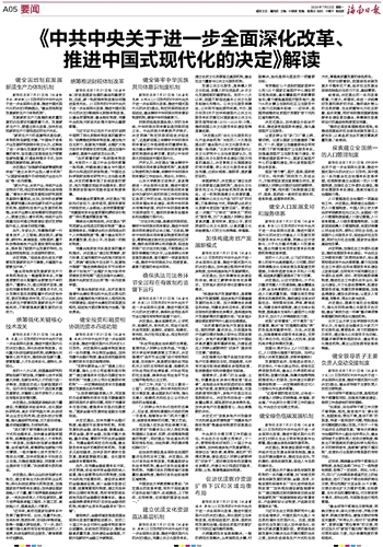新华社北京7月21日电 (记者张辛欣 郁琼源)21日发布的《中共中央关于进一步全面深化改革、推进中国式现代化的决定》明确提出,“健全因地制宜发展新质生产力体制机制”。