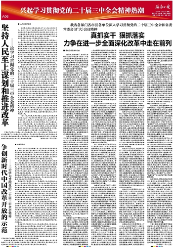 连日来,我省各部门、各市县、各单位召开会议传达学习党的二十届三中全会精神和省委常委会(扩大)会议精神,表示将切实提高政治站位,把全会精神转化为指导工作的思想武器,紧密联系实际,全面深化改革,真抓实干、狠抓落实,力争在进一步全面深化改革中走在前列。