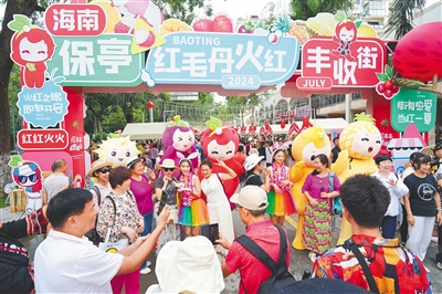 一串串艳红饱满的红毛丹,一杯杯清凉的红毛丹特饮,一份份别出心裁的文创产品……保亭七仙广场旁,“火红丰收一条街”热闹开市,现场设立丰收展示区、娱乐区、科普体验区、农旅融合区、美食区、文创区、休闲区、车尾箱市集区等八大区域,“好吃”“好逛”“好玩”“好买”一应俱全。