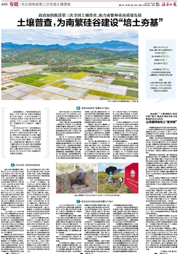 据了解,我省还编制了南繁硅谷-南繁土壤地力提升项目可研报告,争取国家项目资金支持,拟通过三年时间对三亚、乐东、陵水的26.8万亩国家南繁科研育种基地进行改造提升。因地制宜、综合施策,结合水旱轮作、轮作休耕等种植制度,统筹制定农艺、化学、生物与工程措施,提升土壤pH值和耕地土壤肥力。通过深耕深松、施用土壤调理剂、秸秆还田、增施有机肥、种植绿肥等增肥减酸措施,全面提升耕地质量,服务南繁产业高质量发展。