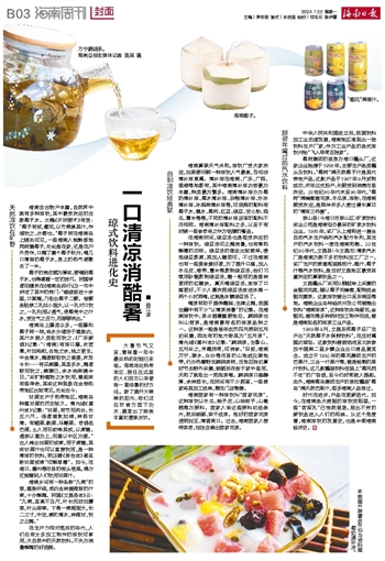 ■ 杨江波大暑节气又至,意味着一年中最炎热的时期已来临。海南地处热带地区,居住在这里的人们自古以来便有一套消暑的好方法。除了避开火辣辣的阳光,他们还在饮食方面下功夫,摸索出了种类丰富的夏季凉饮。