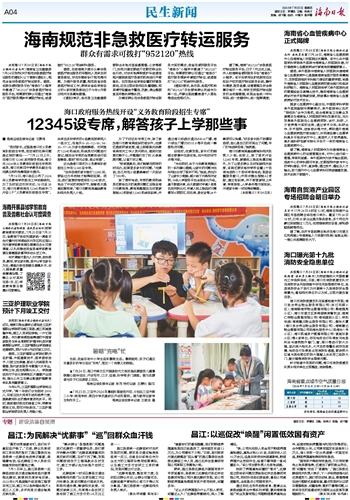 为满足群众在非急救医疗转运服务方面的需求,我省在便民服务平台“海易办”小程序中搭建了“952120”平台,有需要的群众可通过“海易办”医疗服务模块申请医疗转运,或者拨打“952120”热线呼叫服务。