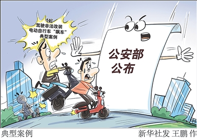 据新华社北京7月24日电 (记者任沁沁)公安部24日公布吉林白城、辽宁沈阳、上海浦东、浙江金华、广东东莞公安机关打击整治驾驶非法改装电动自行车“飙车”违法5起典型案例。其中,2024年7月10日,东莞公安机关查处一起驾驶非法改装电动自行车“飙车”案,抓获违法嫌疑人6人。经查,6月以来,虞某某等6人多次驾驶非法改装电动自行车在滨海湾大桥周边实施“翘头”、竞速疾驶等危险骑行行为,并拍摄、上传视频。目前,公安机关依法对虞某某等6人处以行政拘留处罚。