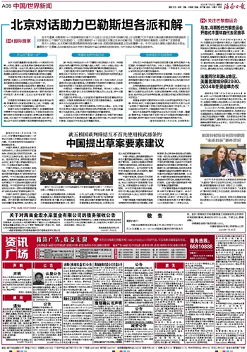 巴勒斯坦民族解放运动(法塔赫)副主席马哈茂德·阿鲁勒在《北京宣言》签署仪式上说,“中国是一道光”,中国所作的努力在国际舞台上是罕见的。