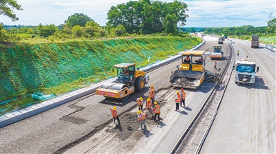 据悉,海口羊山大道至定安母瑞山公路(定安琼海段)项目全长73.144公里。眼下,项目总体建设进度过半,其中路基工程完成94.40%,桥梁及涵洞工程完成94.96%,路面工程、绿化及环境保护设施也正同步推进中。