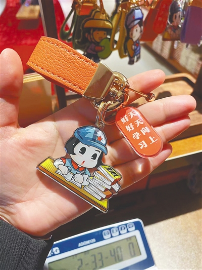 在笔记本上、盲盒里、书包上、书签里,“红阿妹”摆起各种可爱的动作和造型,搭配上励志有趣的网络流行语,这一系列文创产品吸引了很多年轻人的关注。