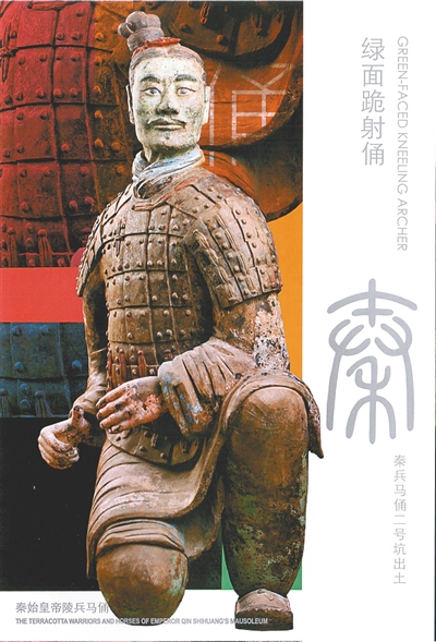 《秦始皇帝陵兵马俑》特种邮资明信片(一套五枚)上的绿面跪射俑。图片来源:中国邮政官网