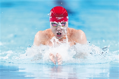 7月27日,中国选手覃海洋在男子100米蛙泳预赛中。新华社发