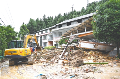 7月28日,在衡阳市南岳区寿岳乡岳林村,救援队伍在搜救作业中。