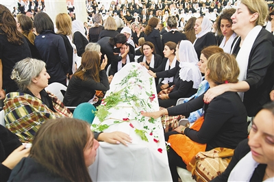 7月28日,在以色列占领的戈兰高地城镇迈季代勒舍姆斯,人们参加火箭弹袭击遇难人员的葬礼。新华社发