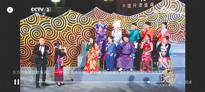 在央视《原声天籁——中国民歌盛典》录制现场,符花金教多位青年歌手演唱黎族民歌“欧欧调”。 视频截图