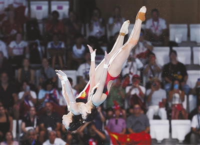 中国选手陈芋汐(后)/全红婵在比赛中。 新华社发