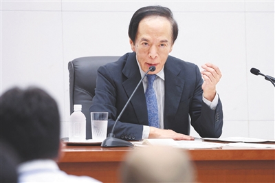七月三十一日,日本央行行长植田和男出席货币政策会议后的记者会。新华社/法新