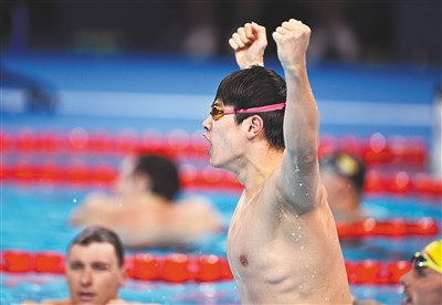 这是本届奥运会游泳赛场上的首个世界纪录,也是中国游泳史上首枚男子100米自由泳奥运金牌。这更是重压之下的爆发!