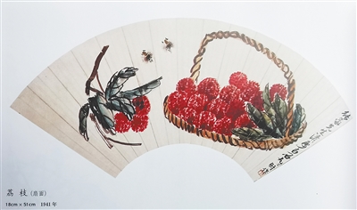 近现代著名画家齐白石的扇画《荔枝》,画上荔枝枝干线条苍劲遒韧,富立体感;果实色泽亮丽,新鲜嫩美,诱人馋涎。现代画家潘天寿的扇画《西湖荷花》,墨彩交融,惟妙惟肖,人们摇动扇子,如觉荷风吹拂,凉意顿生,倍添风流雅趣。