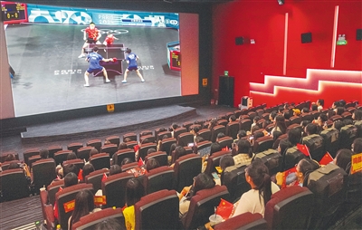 7月30日晚,在海口上邦百汇城一家电影院,球迷通过大银幕观看巴黎奥运会乒乓球混双决赛。海南日报全媒体记者 李天平 摄