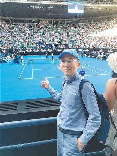 2018年初,管志坚在澳大利亚墨尔本观看澳大利亚网球公开赛。受访者供图